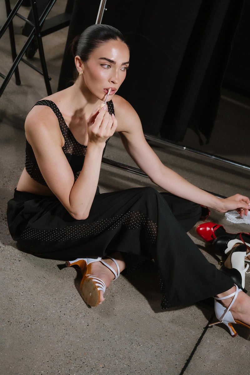 Double Feature Track Pant - Black/White Polka Dot