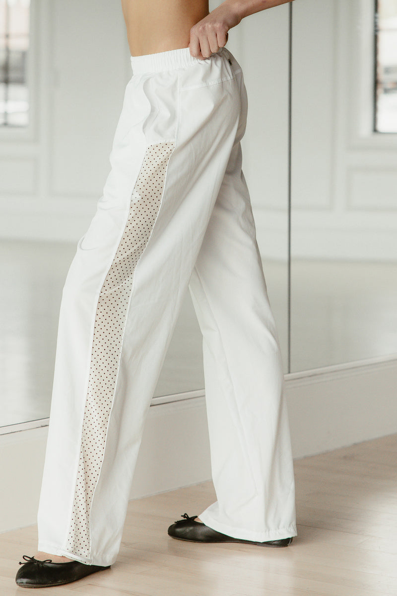 Double Feature Track Pant - White/Black Polka Dot