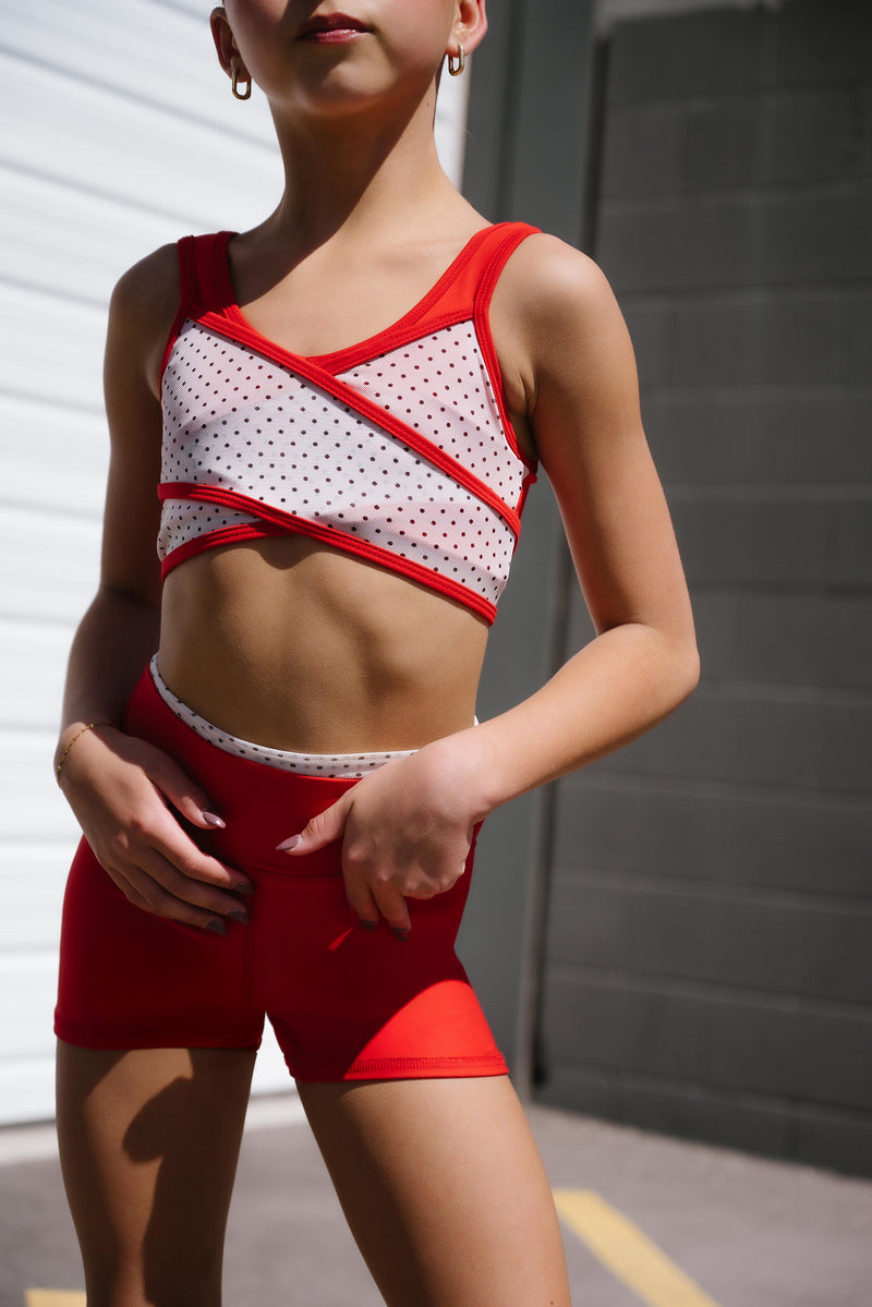 Everyday Hybrid Short 3" - Scarlet/White Polka Dot