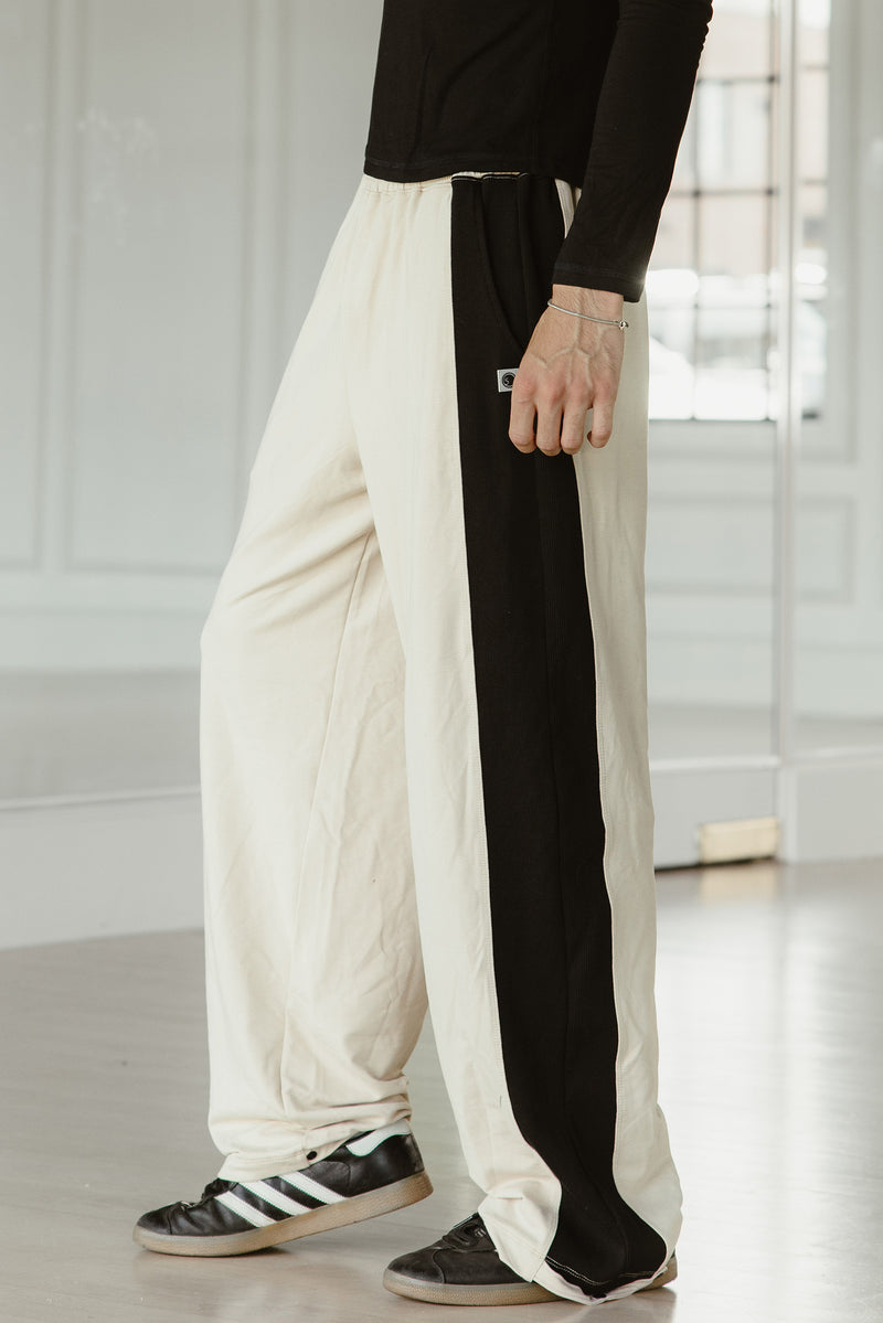 Adjustable ties on the ankle to convert from a straight leg to a jogger.