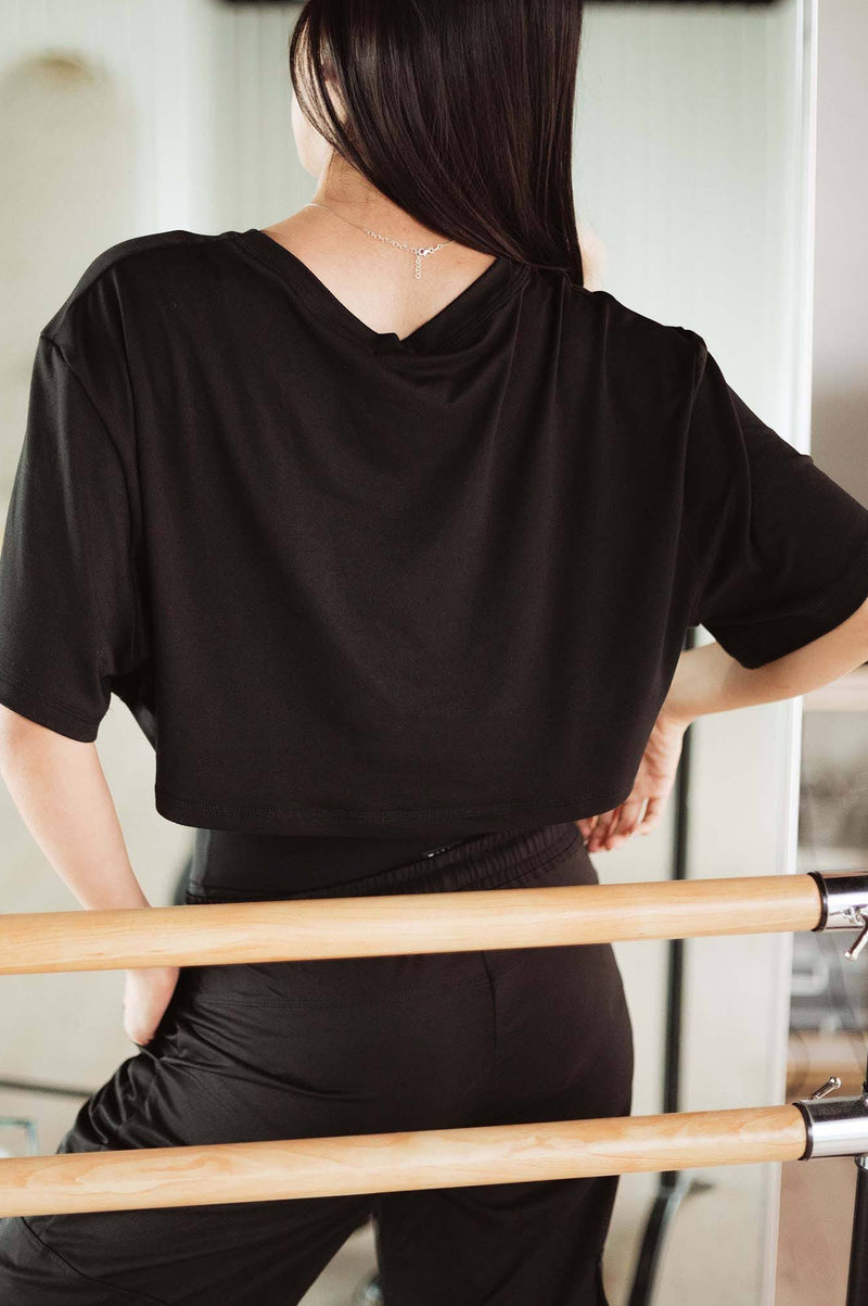 Looks Like: Ultralight weight cropped t-shirt with a matte opaque finish