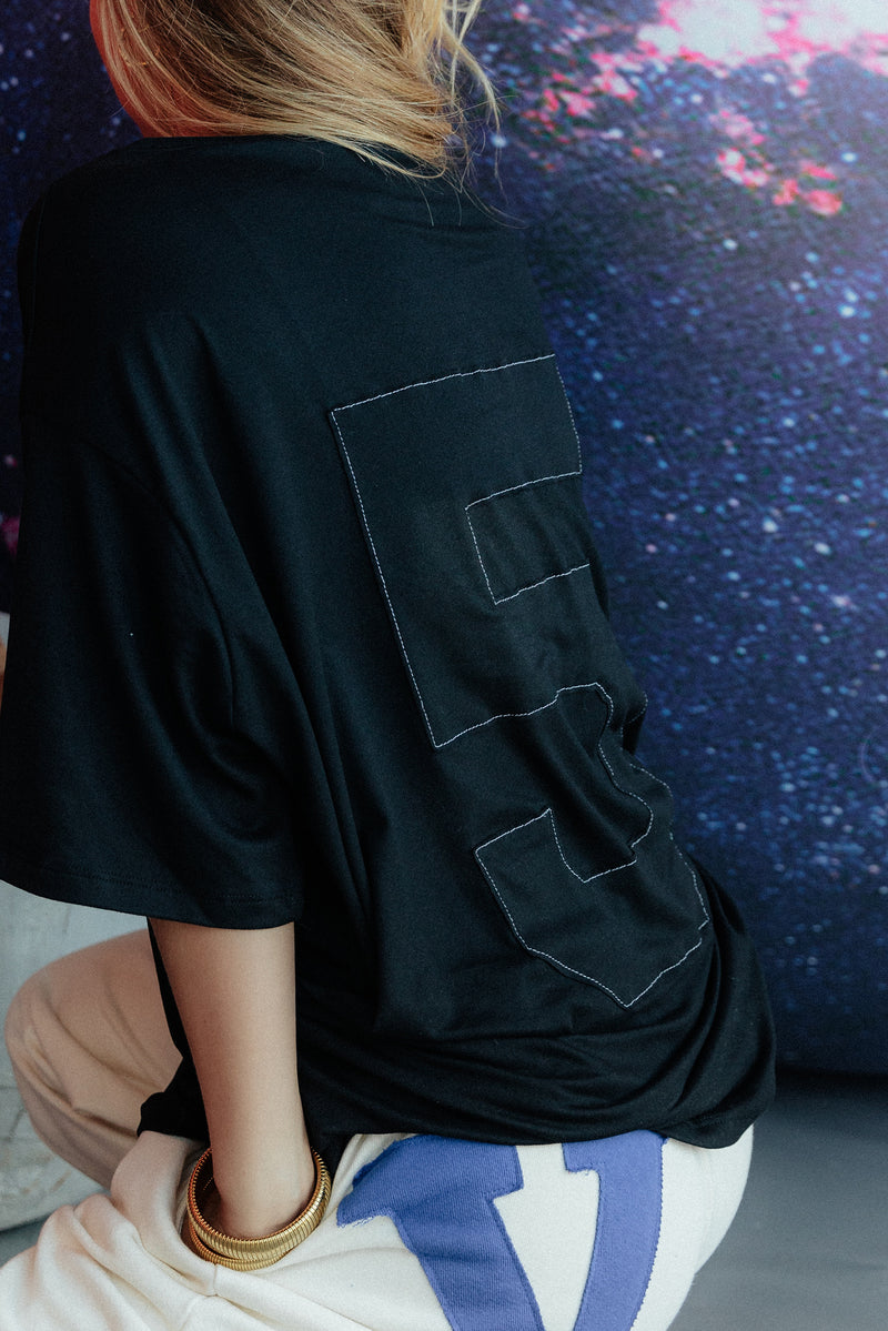 Looks Like: Ultralight weight t-shirt with a "5" appliqué