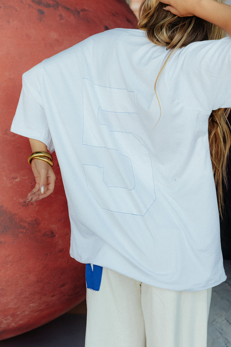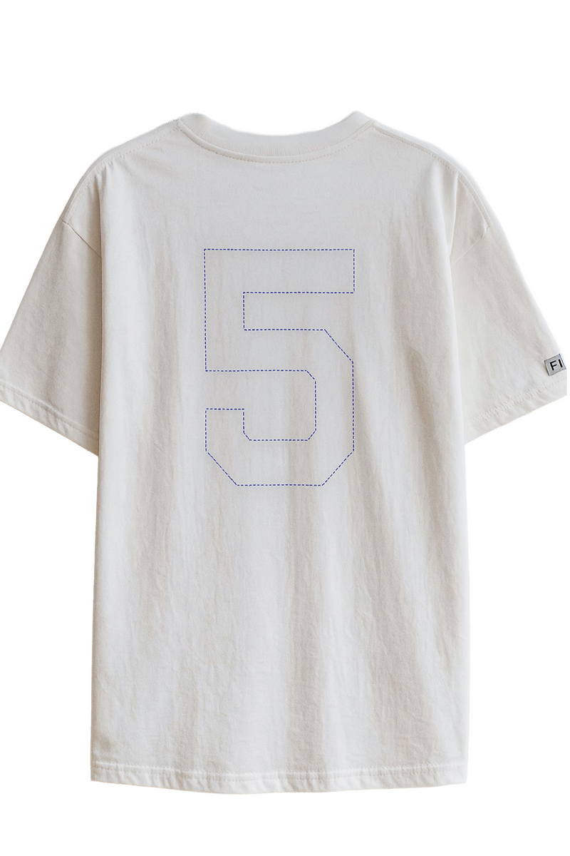 Looks Like: Ultralight weight t-shirt with a "5" appliqué