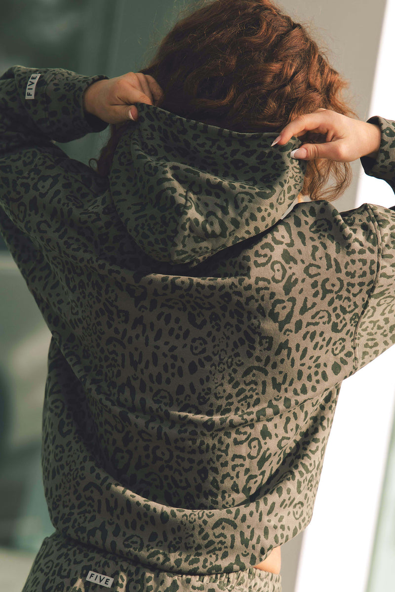 Heart Club Hoodie (Five X Blake) - Olive Cheetah