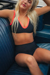 Feels Like: A compressive textured rib fabric designed to hold it all in!